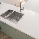 Designet er minimalistisk og skaber et flot fokuspunkt i køkkenindretningen – samtidig giver f.eks. den underlimede montering af køkkenvasken et flot, enkelt og elegant udtryk. En børstet belægning gør tilmed overfladen mindre porøs og nemmere at holde, så vasken bevarer sit flotte look i mange år.
