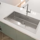 Designet er minimalistisk og skaber et flot fokuspunkt i køkkenindretningen – samtidig giver f.eks. den underlimede montering af køkkenvasken et flot, enkelt og elegant udtryk. En børstet belægning gør tilmed overfladen mindre porøs og nemmere at holde, så vasken bevarer sit flotte look i mange år.