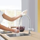 Med Minta Touch fås det ikke mere innovativt, hygiejnisk og smart. Du kan nemlig tænde og slukke for vandet med en enkelt berøring på tuden eller selve armaturkroppen. En let berøring med håndleddet, bagsiden af hånden eller underarmen er alt, hvad der skal til, for at få vandet til at løbe. Køkkenarmaturet kan også betjenes på normal vis ved bare at tænde og slukke med grebet.