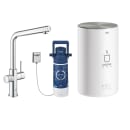 Leveres med filtersæt og en kompakt kedel i størrelse M til montering i skabet under vasken. En medium kedel kan på en gang levere op til 3 liter kogende vand.