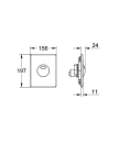 Denne stilfulde Grohe betjeningsplade kan monteres lodret eller vandret og passer perfekt til Grohe Rapid SL-indbygningscisternen. Skylleknappen er til dobbeltskyl eller start/stop-funktion, som giver dig mulighed for at trykke let på skylleknappen for at stoppe skylningen, før den fulde skyllemængde er brugt. Det giver dig mulighed for at spare på vandet, når det ikke er nødvendigt at skylle helt ud.