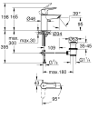 Armaturet er i en Size-M størrelse og har en push-op bundventil der betjenes ved et tryk med fingerspidserne. Derudover har vandhanen også en vandbesparende funktion med Grohes Water Saving teknologi.