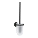 Den matte sorte børste stang og vægmonterede holder fuldendes på fineste vis af den hvidmatterede glaskuppel, hvori selve toiletbørsten opbevares.