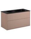 Denne model er med det karismatiske peach-farvede kabinet og sort håndvask, der sammen udgør en smuk kombination. Komplimentér med et matsort eller messing armatur for et fuldendt look.
