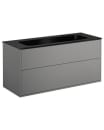 Denne model er med det tidløse askegrå kabinet og sort håndvask, der sammen giver et sensuelt udtryk. Komplimentér med et matsort armatur for et gennemført look eller kombinér med et messing armatur for et elegant touch.