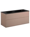 Denne model er med det karismatiske peach-farvede kabinet og sort håndvask, der sammen udgør en smuk kombination. Komplimentér med et matsort eller messing armatur for et fuldendt look.