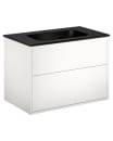 Denne model er med hvidt kabinet og matsort håndvask, der skaber en smuk kontrast. Komplimentér med et krom eller matsort armatur for et fuldendt look.
