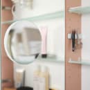 De dobbeltsidede spejldøre giver en luksuriøs følelse, hvor det matterede glas nederst på fronten mindsker fedtede fingre på spejlglasset. Der medfølger magnet og forstørrelsesspejl, som du kan placere efter behov.