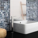 Vandhane fra serien Estetic i flot krom finish sætter med sit organiske formsprog sit eget præg på ethvert badeværelse. Den høje model er særdeles velegnet til håndvaske der monteres ovenpå en bordplade.