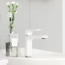 Håndvaskarmaturet har et organisk formsprog og er med øko-stop, så du individuelt kan justere den maksimale gennemstrømning. Derudover har armaturet justerbar temperaturkontrol for øget beskyttelse mod skoldninger.