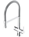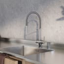Estetic Duo er et køkkenarmatur i krom, der kombinerer et blødt, moderne formsprog med smart teknologi. Sensorstyringen gør det nemt at tænde og slukke vandet uden at røre armaturet – ideelt når hænderne er fedtede eller beskidte. Den udtrækkelige tud giver dig ekstra rækkevidde og gør det lettere at skylle grøntsager, fylde gryder og rengøre vasken. Perfekt til det travle køkken, hvor både funktion og stil er vigtige.
