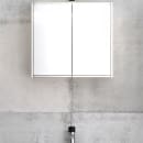 Skabet har dobbeltsidede spejllåger med softclose samt matteret kant i bunden, der forhindrer synlige fingeraftryk. Der medfølger 2 flytbare glashylder, makeupspejl og magnet til at holde styr på småtingene, samt ophængningssystem for nem montering.