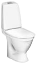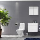 Toilettet, der skal gulvmonteres med skruer, er fremstillet i hygiejnisk, holdbart og tætsintret sanitetsporcelæn. Med en heldækkende kondensfri cisterne, en flad skylleknap i simpelt design og Hygienic Flush, hvor hele skålen rengøres ved udskyl, er toilettet endnu mere hygiejnisk.