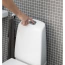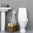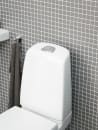 Toilettet, der skal gulvmonteres med skruer, er fremstillet i hygiejnisk, holdbart og tætsintret sanitetsporcelæn. Med en heldækkende kondensfri cisterne og en flad skylleknap i simpelt design er toilettet endnu mere hygiejnisk.