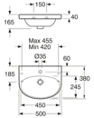 Håndvasken, der er til bolt-/konsolmontering, er fremstillet i hygiejnisk, holdbart og tætsintret sanitetsporcelæn og kendetegnet ved porcelænets høje kvalitet.