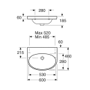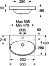 OBS! Denne hÄndvask er uden hanehul, og skal derfor monteres sammen med et vÊg- eller indbygningsarmatur.