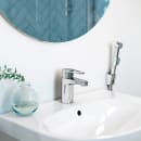 Vandhanen inkluderer en bidetbruser, der er tilsluttet via en 175 cm lang slange. Det medfølgende vægbeslag giver dig friheden til at have bruseren inden for rækkevidde efter toiletbesøg.