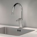 Det tidløse design skaber harmoni og med den blanke overflade, er armaturet let at rengøre. Den høje tud kan svinges 110°, så du let kan komme ud i alle hjørner og afkroge af vasken.
