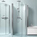 Denne model åbner op til 180°. Brusedøren er vendbar og med blankpolerede greb, der matcher de skinnende profiler. Glasset er 6 mm sikkerhedsglas.