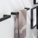 Håndklædeholderen fra Gustavsberg præsenterer sig med et sammenhængende designudtryk, hvor de præcise og stramme linjer møder elegant afrundede hjørner.