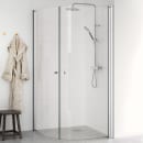 Denne model er med to døre, der åbner op til 180°. Brusedørene er vendbar og med blankpolerede greb, der matcher de skinnende profiler. Glasset er 6 mm sikkerhedsglas.