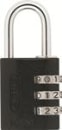 • Kodelås i let massiv aluminium med 3 - 4 cifferet indstillelig kode.
