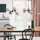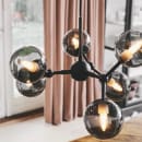 Halo Design Atom Mini pendellampe med 6 stk. glaskugler med røgfarvet glas er en meget dekorativ og fin pendel, der både spreder lys og liv omkring sig. Dens legende design gør det oplagt at placere den over spisebordet eller i stuen, hvor den kan vise sig frem.