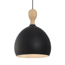 Halo Design Dueodde pendel med sort metalskærm og en top i massivt egetræ er en æstetisk kombination, der tilfører et stilfuldt element til indretningen. Den blanke inderside sikrer, at der udsendes et stærkt lys, hvilket gør det oplagt at hænge den hen over spisebordet, køkkenøen eller i stuen.