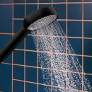 Håndbruseren er udstyret med Hansgrohes QuickClean+ funktion, hvor de bløde silikondyser modvirker kalkaflejringer. Eventuelle rester kan nemt gnubbes væk med fingrene.