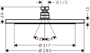 Med en størrelse på Ø280 mm får du Hansgrohes XXL performance. Hovedbruseren har et kugleled, så du kan justere brusehovedet i den retning du ønsker.