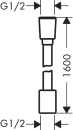 Bruseslangen har en konisk tilslutning til håndbruseren og en cylindrisk til blandingsbatteriet. Begge sider har 1/2" indvendige gevind.