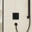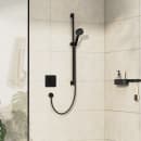 Du åbner og lukker let for vandet i din foretrukne håndbruser ved blot at dreje grebet på den kvadratiske betjeningsplade til højre. Betjeningspladens minimalistiske design viser diskret, hvilken retning du skal dreje den nederste del af termostatgrebet for at justere til den ønskede vandtemperatur. Det er nemt og ligetil for enhver.