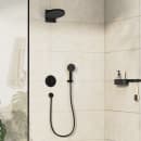 Drømmer du om et stringent bruseareal uden for mange unødvendige elementer på væggen? Så kan dette Hansgrohe DuoTurn S brusearmatur til indbygning være løsningen på din drøm. Armaturkroppen skal indbygges i væggen, så det kun er betjeningspladen og grebet i en flot mat sort farve, der er synlige.