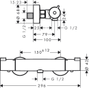 Armaturet har 1 udtag, metalgreb og leveres med forskruninger og rosetter. Med en centerafstand på 150 ± 12 mm og tilslutning via G ½ S-tilslutninger er det nemt at montere på eksisterende installationer. Derudover er termostaten forberedt til termisk desinfektion, hvis der stilles krav til ekstra hygiejne.
