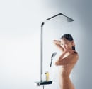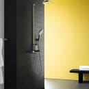Alle brusesystemets dele er af højeste Hansgrohe kvalitet, mens designet er elegant og bruseoplevelsen eminent.
