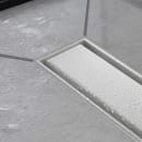 Med RainDrain Match linjen får du en helt unik mulighed for at sætte dit personlige præg på dit bad. Der findes seks forskellige overflader til afdækning af afløbsrenden, hvoraf to af dem er i glas. Desuden kan overfladerne (dog ikke glasvarianterne) vendes og dækkes med keramikfliser på maks. 18 mm, som giver brusebadet et gennemført og lækkert design.