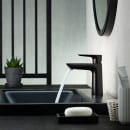Håndvaskarmaturet er af højeste Hansgrohe kvalitet, mens det smukke, eksklusive design i mat sort vækker opsigt.