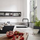 Stilren og slank køkkenarmatur fra Hansgrohe M54 serien med flot mat sort overflade. Armaturet er med den høje U- tud særdeles velegnet til at fylde gryder uden problemer. U-tuden giver et unikt design look til køkkenet.