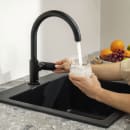 Vernis armaturet er udført i et stilrent design med fokus på det elegante formsprog, der passer til både det moderne og klassiske køkken. Vandhanens svingradius kan justeres i to trin (120/360°).