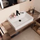 Vaskens bassin har en god og anvendelig stĂžrrelse, ligesom den brede kant mod vĂŠggen giver plads til sĂŠbedispenser, tandkrus eller et lille duftlys.
