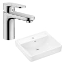 Denne pakke fra Hansgrohe gør det nemt at få en praktisk og flot håndvaskeløsning til dit badeværelse. Håndvasken fylder ikke meget, men har stadig god plads til det, du bruger den til i hverdagen. Den hænger på væggen, så det er let at gøre rent under den – og den har et enkelt, tidløst design, der passer ind de fleste steder. Armaturet er med vingegreb og leveres med en smart push-open bundventil, så du slipper for at rode med løse propper.