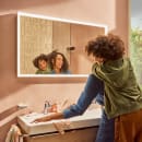 Både det minimalistiske udtryk og spejlets form er designet til at skabe en smuk harmoni med din Hansgrohe håndvask. Den mat hvide ramme og runde (S) eller firkantede (E) form har et udtryk, der stemmer 100% overens med Hansgrohes håndvaske og møbler. Derfor kan du med fordel vælge spejlet  i samme bredde som din håndvask for at skabe et flot, sammenhængende udtryk, der udstråler kvalitet og design.