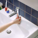 Med EcoSmart+ bruger armaturet kun 4 liter vand i minuttet ved normalt tryk, og CoolStart-funktionen sørger for, at varmt vand kun aktiveres, når du aktivt drejer grebet mod til venstre. Det gør det nemt at passe på både varme- og vandforbruget – uden at skulle tænke over det.