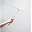 Den perfekte skraber til at fjerne vanddråber og sæbe fra glas, spejle, fliser og marmoroverflader uden at skulle bukke dig eller stå på tæer. Gummibladet sørger for en stribefri overflade. Opbevares på den medfølgende sugekop-krog.