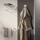 Håndklædeholderen er opdelt i to kroge, som er forbundet i et fælles bagstykke. Krogene har en god højde, så du nemt kan hænge både håndklæder og badekåber derpå.