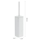 Toiletbørsten kommer med en firkantet og elegant beholder, som lukkes fint af med låget på børstestangen, og dermed skjules selve børsten, når den ikke er i brug.