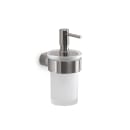 Den elegante vægholder i rustfrit stål fuldendes af beholderen i matteret glas, og forsyner dig med et tidløst og moderne produkt, som du kan bruge til opbevaring af både tandbørster og makeuppensler.