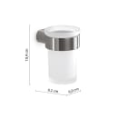 Den elegante vægholder i børstet stål fuldendes af beholderen i matteret glas, og forsyner dig med et tidløst og moderne produkt, som du kan bruge til opbevaring af både tandbørster og makeuppensler.