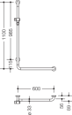 Med denne løsning fra Hewi, som minder om et L, får du en elegant og funktionel løsning til dit brusebad. Ved montering kan du justere, om den horisontelle stang skal være til venstre eller højre. Den lodrette stang har desuden en ergonomisk udformet, justerbar holder til din håndbruser.