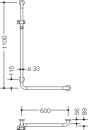Med denne løsning fra Hewi, som minder om et L, får du en elegant og funktionel løsning til dit brusebad. Ved montering kan du justere, om den horisontelle stang skal være til venstre eller højre. Den lodrette stang har desuden en ergonomisk udformet, justerbar holder til din håndbruser.